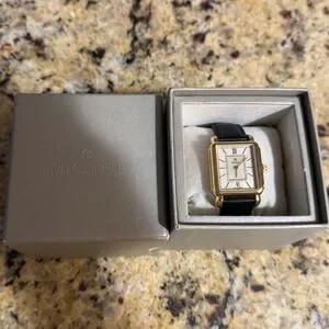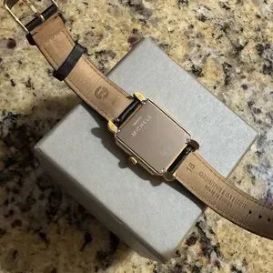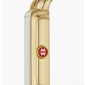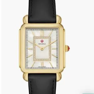 MICHELE Deco II Mother of Pearl Diamond 18K Gold Plated Leather Band Watch