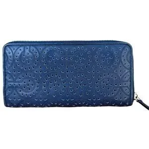 COACH Madison Blue Laser Cut Leather Accordion Zip-Around Wallet