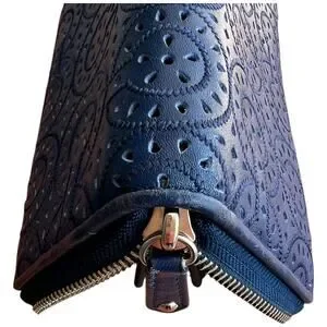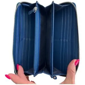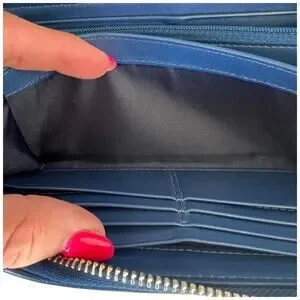 This COACH Madison wallet is in excellent condition and features a beautiful blue laser-cut leather design. The zip-around closure ensures your belongings are secure, while the interior offers plenty of space for cards, cash, and coins.