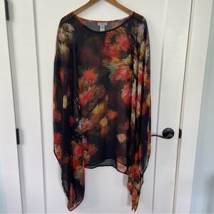 Catherines Black Abstract Floral Watercolor Artsy Sheer Kaftan Top Shirt