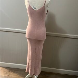 Step out in style with this Freshman Pink Ribbed Slip Midi Dress, perfect for cocktail parties or a night out. Featuring a sleeveless design with delicate spaghetti straps, this dress offers a chic and modern look. The ribbed fabric and midi length create a flattering silhouette that enhances your natural curves.new, never worn, just removed tag