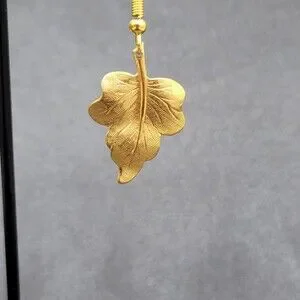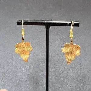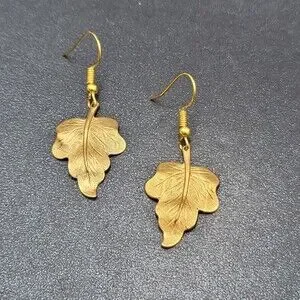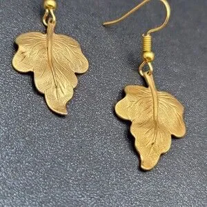 Pierced Earrings Brushed Gold Plated Dangle Detailed Leaves 1 1/8"