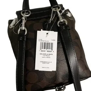 This elegant Coach backpack features a sleek black design with a signature monogram pattern, offering a perfect blend of style and functionality. The drawstring closure with a flap top adds a touch of sophistication, making it an ideal choice for everyday use. Crafted with attention to detail, this backpack embodies the timeless elegance and practicality that Coach is renowned for.