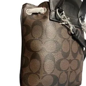 Coach Black Backpack with Signature Design and Drawstring Closure