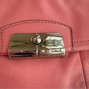 This supple 2012 Coach pink leather hobo bag is a versatile piece to add to your collection. It features a zip top closure and can be worn as a shoulder bag or a crossbody. There is an exterior pocket with metal clasp for quick access to your cell phone and a zippered pocket and two slip pockets on the inside. Decorative unbranded twilly scarf included.