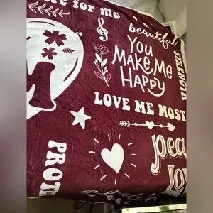 Super Warm & Fluffy WRAPAROUND Blanket featuring MOM-She’s your Best Friend! Remind her with this Burgundy-Brown & White Hooded Robe Blankie! Big size approx. 72” across x 66” length/16” tall hood with 2 Pom-Pom ties, 2 inside hand pockets. NEW without Tags from nonsmoking home!