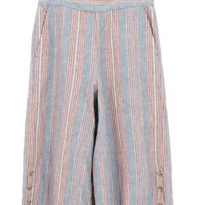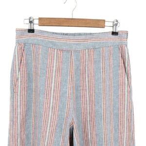 Madewell Tall Side-Button Huston Pull-On Crop Linen Blend Pants Rainbow Stripe L