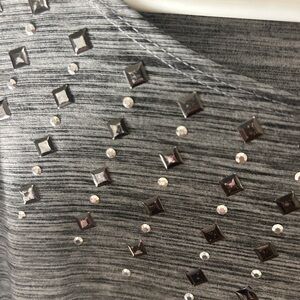 Elevate your wardrobe with this stylish gray top featuring elegant studded details. Perfect for any occasion, this top offers both comfort and sophistication.