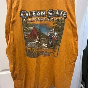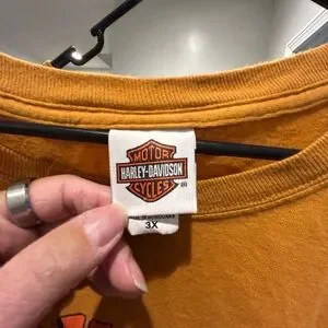 Vibrant orange tee with classic Harley-Davidson logo. Perfect for casual wear.
