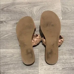 These tan sandals from A New Day feature a stylish braided design across the upper strap, offering a chic and minimalist look.