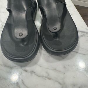 Stuart Weitzman Black Stuflex T Strap Sandal/ Flip-Flops