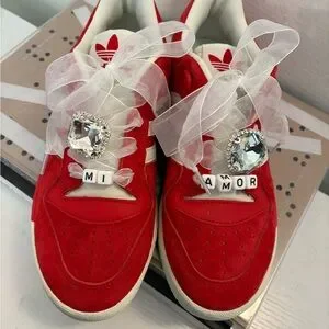 These Adidas sneakers showcase a vibrant red upper paired with white accents, including a unique lacing system that adds a touch of flair. The white midsole enhances the bold look, making them perfect for casual wear. With their low-top design, they offer both style and comfort for everyday adventures.