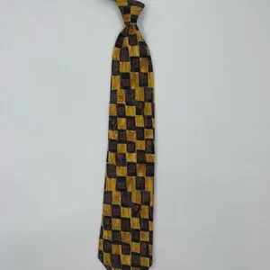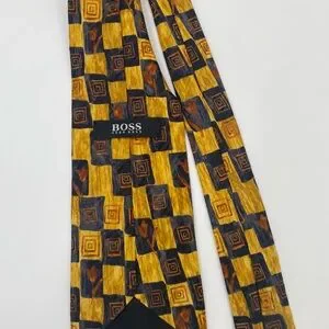 Enhance your formal attire with the Boss tie, showcasing a bold yellow and black checkered pattern. Crafted with a silky texture, this accessory offers a sophisticated touch to any ensemble. The geometric design ensures a standout look, perfect for making a statement at any formal occasion.