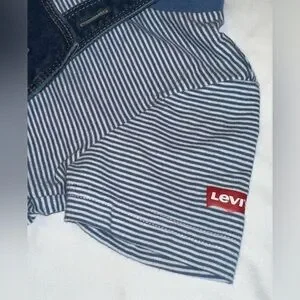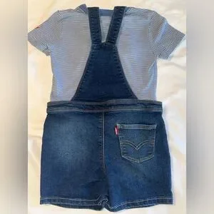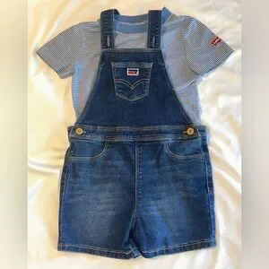 Experience timeless style with Levi's blue denim overalls with matching top. Crafted from durable denim, these overalls feature a classic indigo wash with a slightly worn-in look. Perfect for casual outings, they offer a blend of comfort and iconic design.