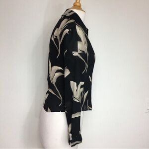 VNT Jones New York 100% Silk Button Down Long Sleeve Floral Semi Sheer Blouse