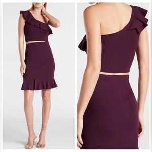 Express 2 piece One Shoulder skirt set Burnt Orange Size S