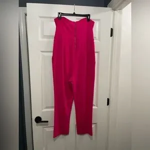 Chic straight leg jumpsuit. Vibrant pink color. Strapless design. Perfect for any occasion.