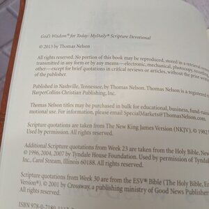 "God's Wisdom for Today - My Daily Scripture Devotional" by Thomas Nelson, published in 2013, is a daily devotional book that provides a collection of scriptural wisdom and reflections to help readers connect with God and find guidance for their daily lives. Written in English, this book offers a daily dose of inspiration and insight from the Bible, making it a valuable resource for those looking to deepen their faith and relationship with God. With Thomas Nelson as the author and God as the publisher, readers can trust in the quality and authenticity of the content presented in this devotional.