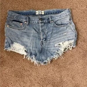 We The Free Blue Distressed Jean Shorts
