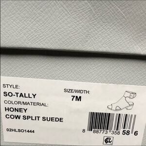 Sole Society Tally Honey Cow Split Suede Block Heel Sandals A high ankle strap and cutout details bring textural appeal to this block heel sandal. Featuring an adjustable buckle and an open-toe silhouette.