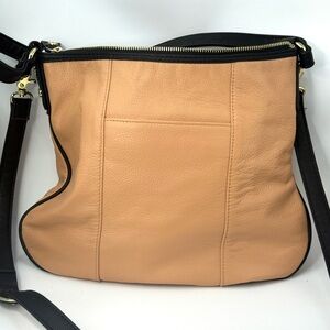 Emma Fox Tan and White Crossbody Bag with Gold Accents