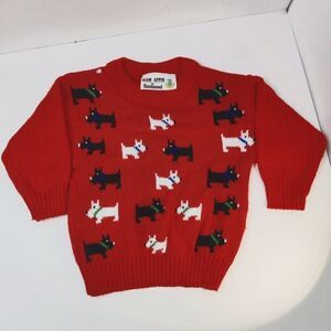 🎅 Glen Appin of Scotland Scotty Dog Red Baby Sweater Sz 12M - 18M