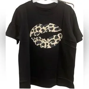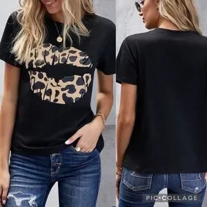 BLACK Modern Vintage Boutique Kiss On The Face Leopard Lip Tee