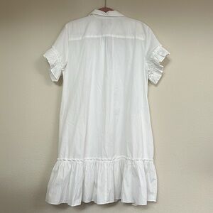 NWT J. Crew - Amelia Crisp White Ruffled Hemline Button Down Midi Shirt-Dress