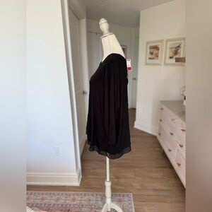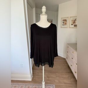 Black 3/4 Sleeve Relaxed Fit Blouse | Sheer Hem | Lightweight & Flowy