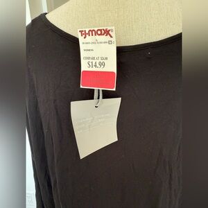 Style: 3/4 sleeves, relaxed fit, scoop neckline, sheer trim at hem and neck