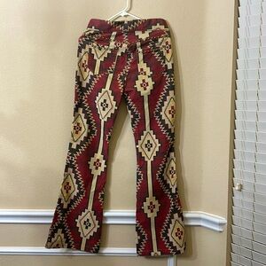 Double D Ranch Flare Pants Red and Cream Geometric Design