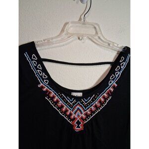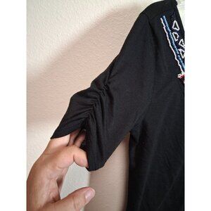 Daytrip Blouse Beaded Boho Tribal Embellished Y2K Casual Black Size Medium