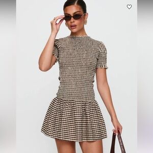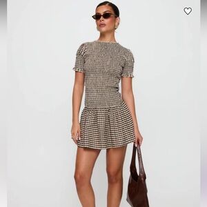Princess Polly Laurita Shirred Mini Dress Brown Check