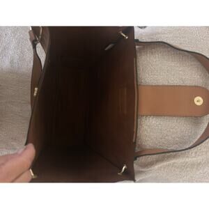 Hold all your essentials and more in this sleek large Steve Madden tote bag. Double handles, gold tone hardware and front snap closure. One large pocket in front with open roomy soft interior. Excellent preowned condition.