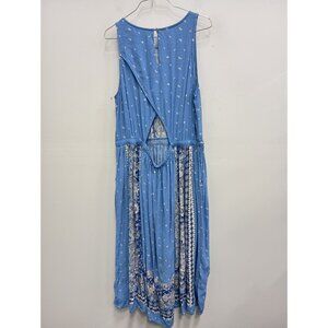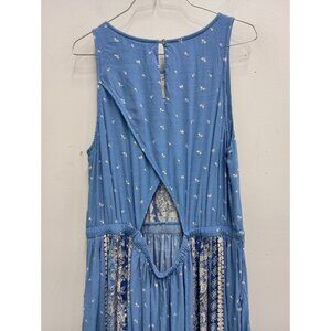 LOFT Womens BOHO Maxi Dress XL Blue Floral Sleeveless Cutout Back Beach Vacation