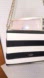 Black and off-white striped bag with gold chain strap and hardware. I didn’t use this much, but the corners show wear and could be fixed.
