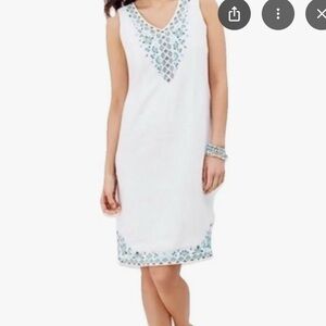 J Jill Love Linen Dress White Embroidered XL Resort Vacation Beach