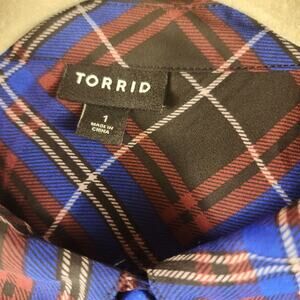 Torrid MADISON GEORGETTE Plaid Blue Blouse Womens 1X Long Sleeve cabincore comfy