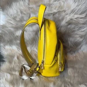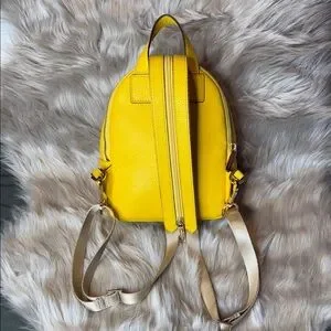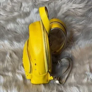 Elevate your look with this vibrant yellow backpack. Features stylish stud accents. Perfect for a bold fashion statement. Can be worn with one strap or two.