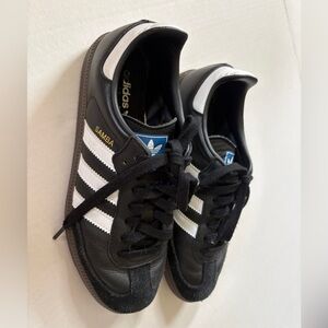 Adidas classic black and white Sambas, gender inclusive. Listed as a men’s size 7, but I’m a women’s size 8/8.5 and these fit me well. EUC. Perfect for everyday wear!