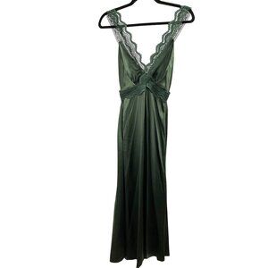 The Kooples Silk $500 Green Satin & Lace Midi Slip Dress Cut Out Small