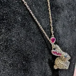Kate Spade Silver Bunny Necklace With Blue and Pink Crystal Embellishments