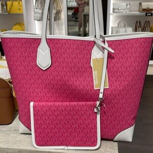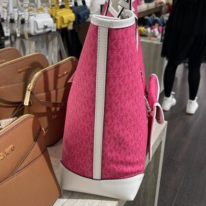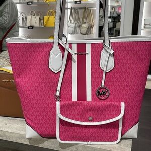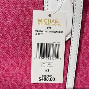 Michael Kors Eva Large Signature Logo Stripe Tote Bag Dragonfruit NWT