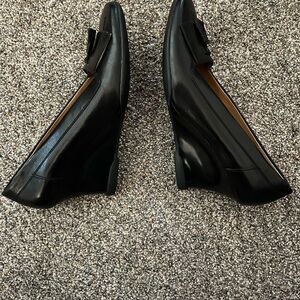 Naturalizer Banter black leather kilted wedges with tassels; 2 3/4” wedge; size 7M; worn once, like new condition