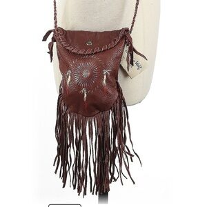Patricia wolf hand painted shield leather crossbody Native American boho NWT 295