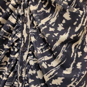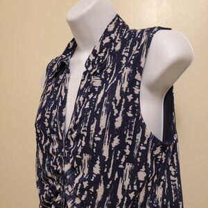 Cable & Gauge Blue Patterned Sleeveless Button Front V-Neck Collared Top - M