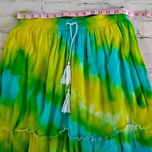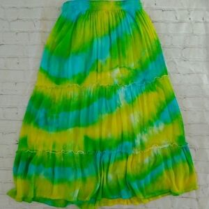 Embrace a burst of color with this vibrant rayon tie-dye maxi skirt. Perfect for adding a splash of fun to your wardrobe. Size M. Lined.