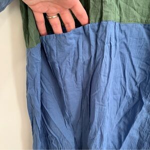 Gudrun Sjõdén 100% Cotton Green Blue Kaftan-Style ¾-Sleeve Maxi Crinkle Dress XL