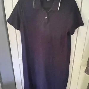 Navy polo style dress by Lands' End, size Medium. Collar is white tipped. Comfy, roomy, great for wear on a hot day or hot date. Excellent condition; worn 5 times or so. Machine washable.