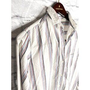 GRAYSON Women's White Multi-Stripe V-Neck The Hero Button Front Blouse 02 Small